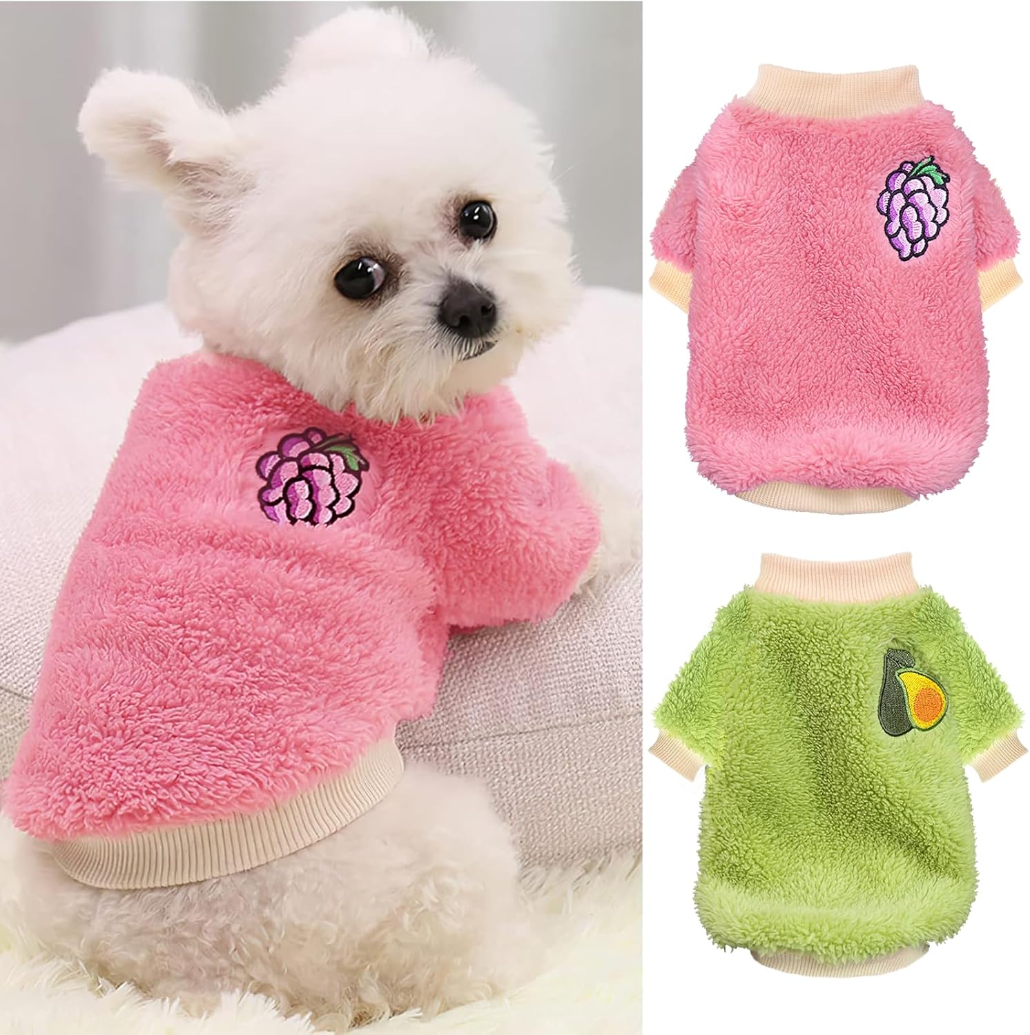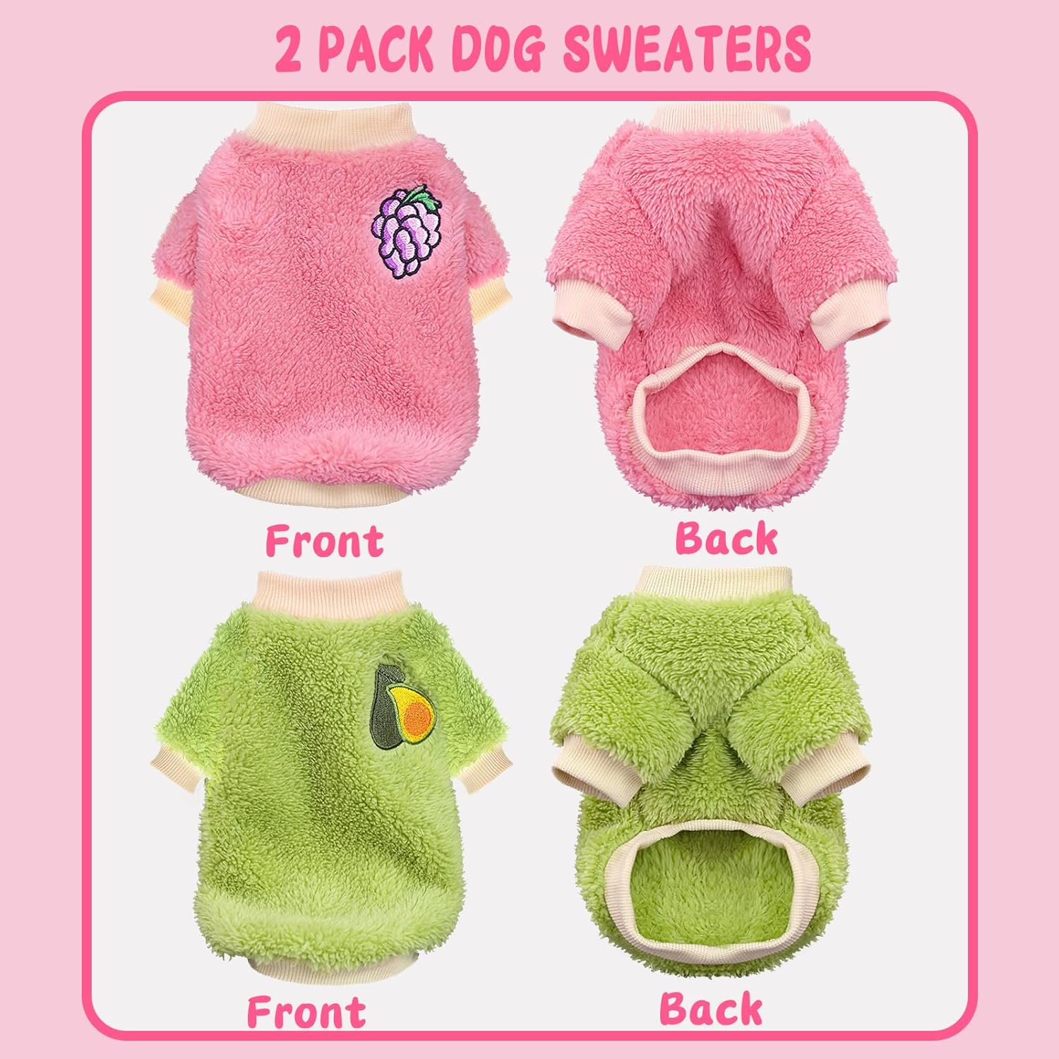 2 Pieces Puppy Sweaters Small Dog Sweater Female Yorkie Clothes Dog Clothes for Small Dogs Winter Warm Fleece Chihuahua Sweater Cute Style Pet Clothing (Small)