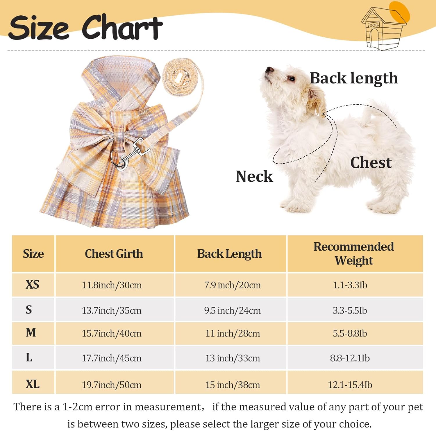 - Attentions Please : our doggy dresses only suitable for most small pets, like small dogs, cats, rabbits, chihuahuas pomeranian, maltese, shih tzu, poodle, maltipoo, yorkie, french bulldog; Not suitable for medium and large breeds dogs; Please refer to the size chart before purchase, and measure your pet’s chest girth and back length, your pet usually wears a size S doesn’t mean all sizes S fit her; If the measured size is between two sizes, we recommend that you choose a larger size