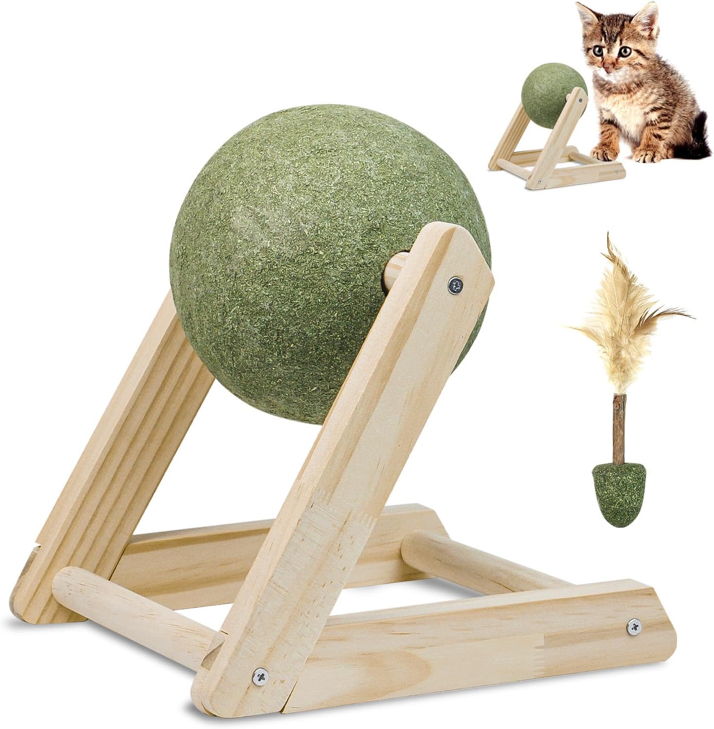 - 【Unique Design of Catnip Toy】Wooden stand and huge catnip ball have good stability, no matter how much your cat licks or rubs it, the cat nip ball still stays standing.